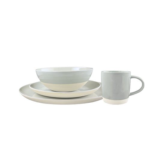Shell Bisque Grey Porcelain 4 Piece Dinnerware Set, Service For 1