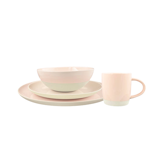 Shell Bisque Soft Pink Porcelain 4 Piece Dinnerware Set, Service For 1