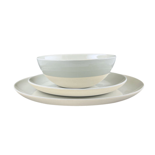 Shell Bisque Grey Porcelain 3 Piece Dinnerware Set, Service For 1