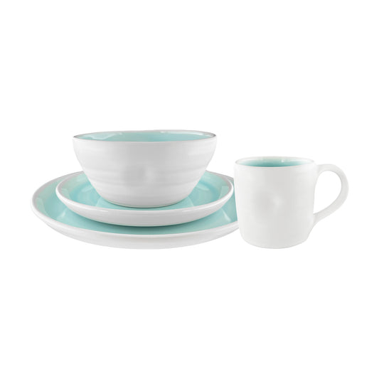 Pinch Aqua Stoneware 16 Piece Dinnerware Set, Service For 4